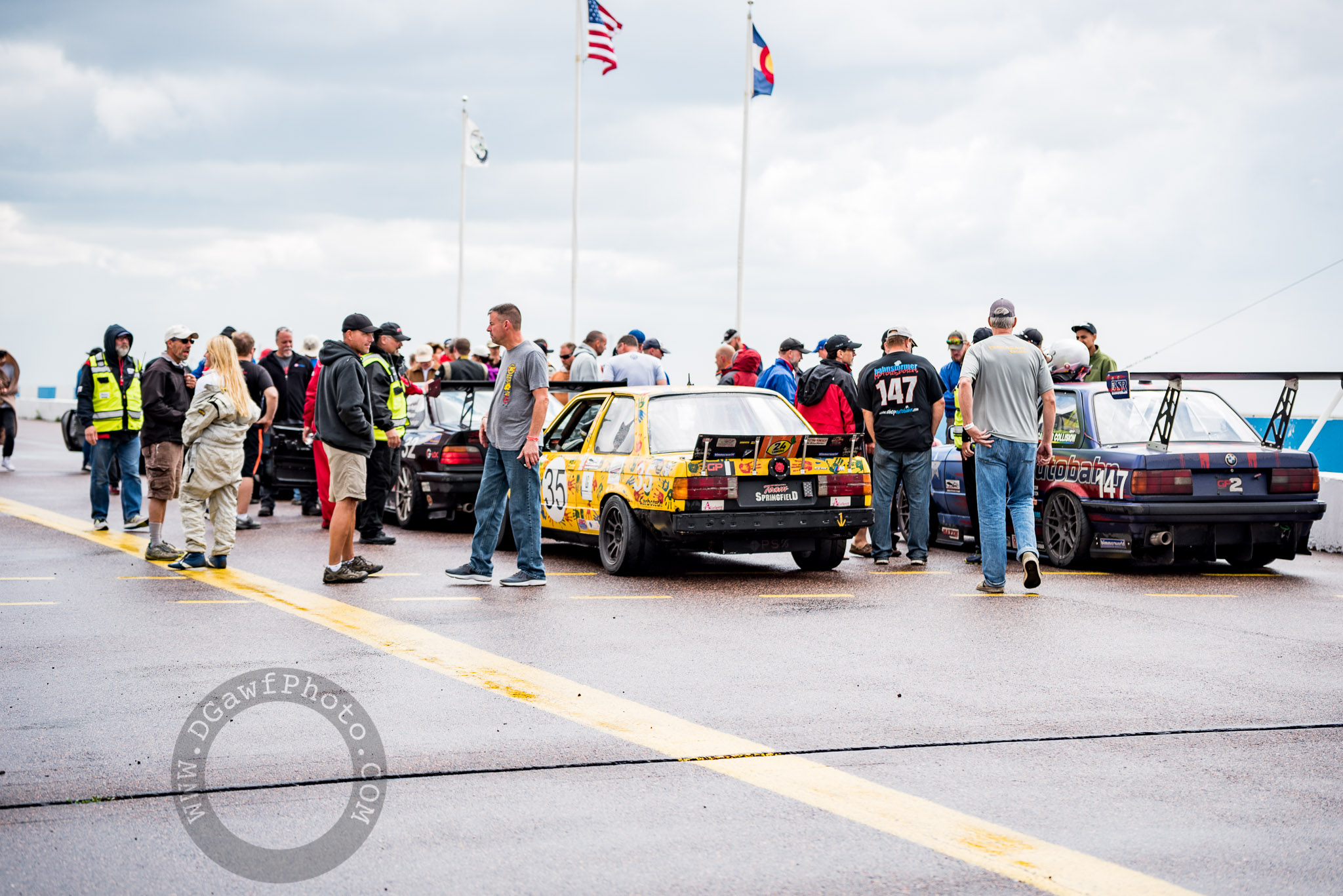 It was somewhere west of the Colorado border. I remember it well. We had been driving all day after loading all of our gear into Todd’s E46 wagon and stashing my shitbox in his garage for safe keeping, storms had been called for after all. The restaurant had a buy one get one drink special. I do have a fondness for IPA’s, and being a cheap ass. I had drank my third beer, and was asked if I was ready for my fourth. I hesitated. The waitress sensed my weakness and pounced upon me. Started calling me a little girl, Todd and Dave chimed in in chorus with her. I try not to make it a habit of conforming to social norm’s or peer pressure, but I wasn’t driving, and she was right, it was more or less a free beer, and I may or may not, in fact, be... a little girl. So I drank it. Well most of if it anyways. more or less in a few gulps. We paid the toll, and proceeded upon our way. Before we left, thinking wise of it, I relieved some pressure that had formed in my bladder. Now you have to keep in mind, we are in the middle of nowhere eastern Colorado. Sitting in the back seat of the wagon it soon dawned on me, that I had not in fact relived a sufficient amount of pressure from my lower abdomen. Being where we were, rest stops, and more importantly bathrooms were not so easy to come by. It was a miracle we made it to a gas station without me leaking converted beer all over the back seat of the wagon. A dubious thought, no doubt. After returning to a chorus of laughter, we continued on our journey to the High Plains Raceway, where, in a few days a feat of automotive and physical endurance would commence. 1 car, 6 men, and 24Hrs of automotive racing. I was merely a tag along. “Crew” as some call. Mostly a shiftless layabout with a camera and a strong penchant for using it without regard. I made it until dawn before I rested on race day. I managed, with the help of friends, to wake before the finale. The drivers, they had a longer, harder slog then I. Rain, lightning, red flag stoppages, darkness, parts failures, blinding sun, blinding lights from other cars, fatigue, the unrelenting pressure of competition. There was much brought to bare, but in the end, they finished. which, if you have ever competed in any kind of endurance exercise, is in, and of itself, a significant accomplishment.